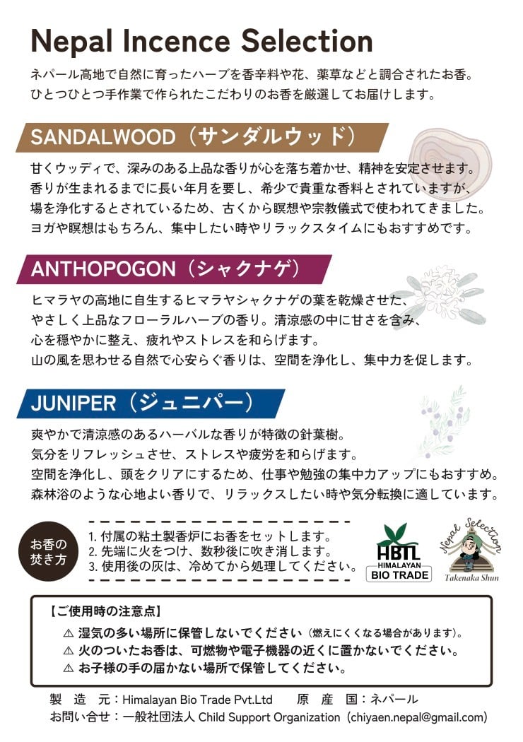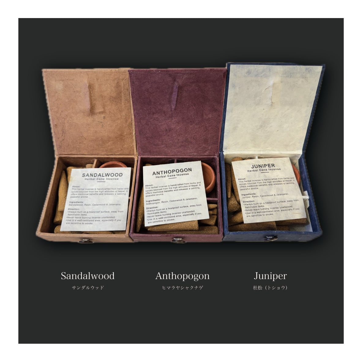 ネパール高地の天然ハーブだけを使った、手作りの円錐型インセンス。